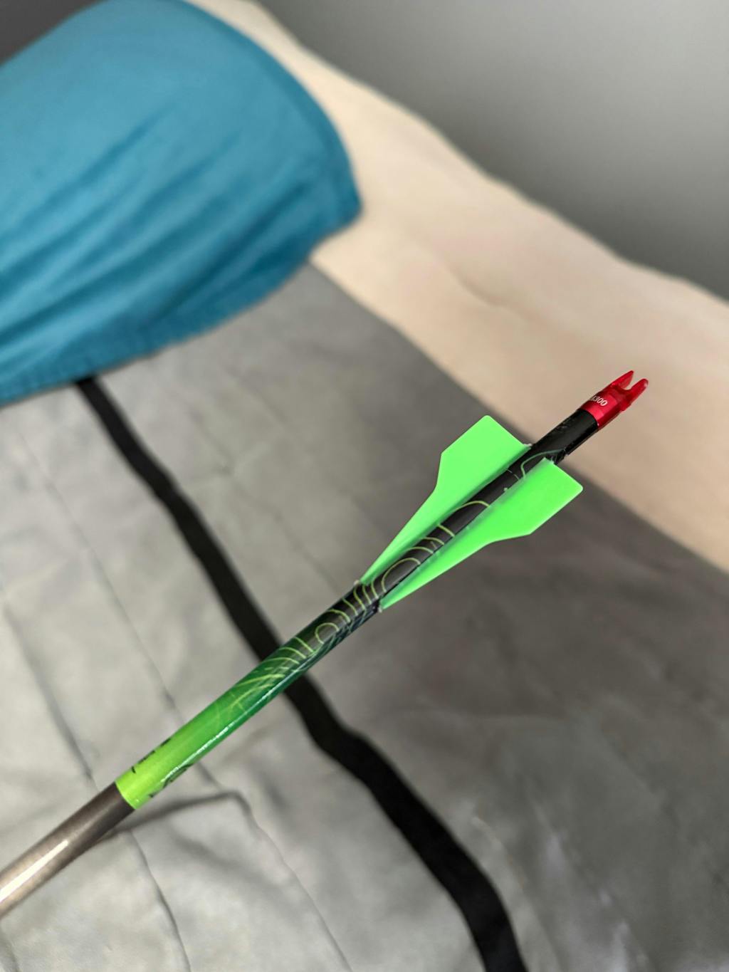 Match these up with your favorite color vanes. The black blends nicely from the carbon arrow through the topo field into the final color.